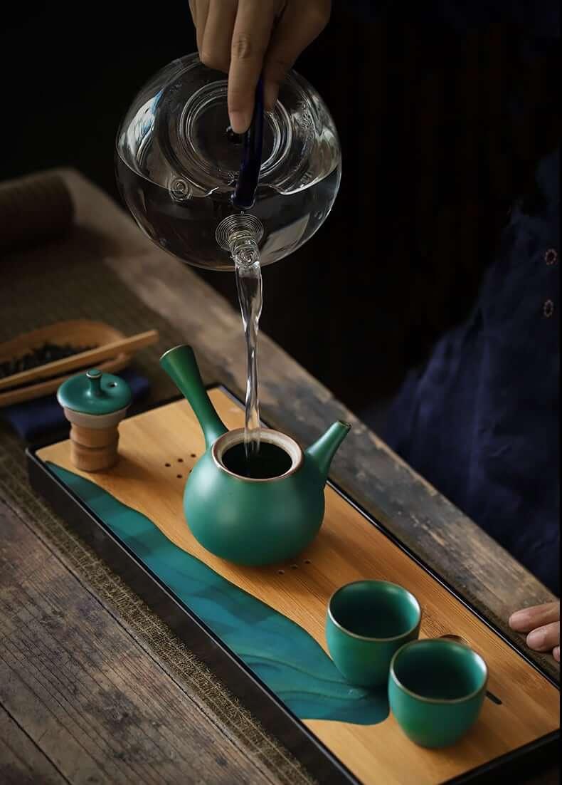 This step is a detail that takes your tea to the next level and almost no one does it. But they should. Take some of the boiled water and fill half the teapot and give it a few swirls then throw out the water. We’re warming the teapot so that when the hot water for tea goes in, the water temperature won’t drop too much. - Put tea into teapot and add hot water.