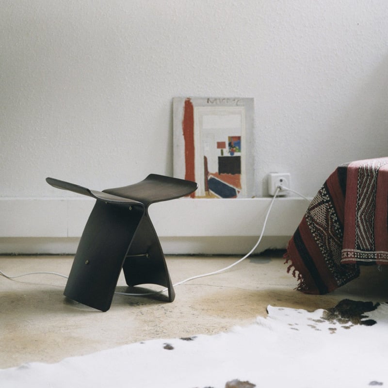 Sori Yanagi, 1954 Concept: Taji Butterfly stool is a graceful and elegant stool, designed back in 1954 by the Japanese designer Sori Yanagi (1915-2011). The shape of the stool comes to life in the beautifully curved plywood that mimics the shape of a butterfly. The delicate stool combines Asian aesthetics with the plywood molding technique developed by Charles and Ray Eames. The Butterfly stool is a simple and soulful addition to any interior.